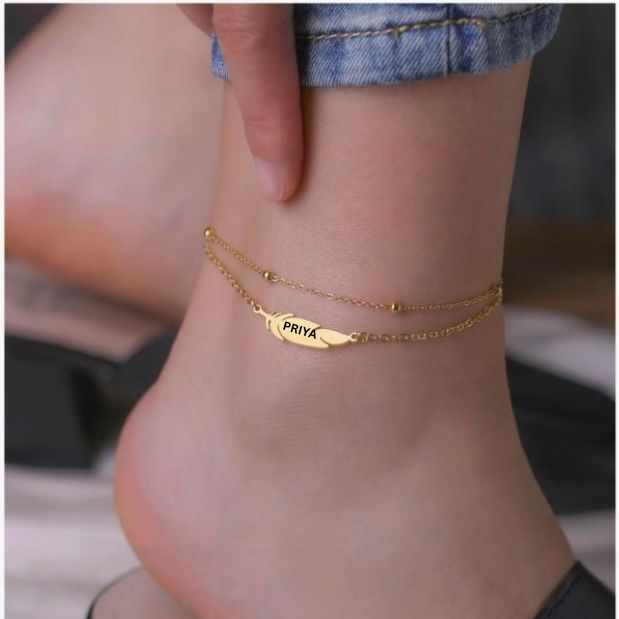 Customised Beautiful Double Chain Boho Feather Anklet