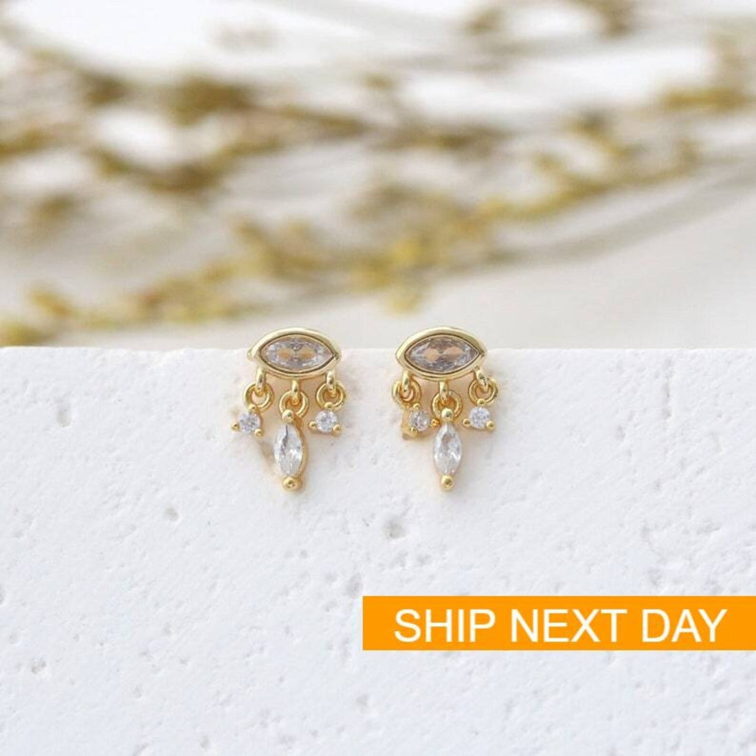Cosmic Eye Stud Earrings: Sparkling Zirconia Stones